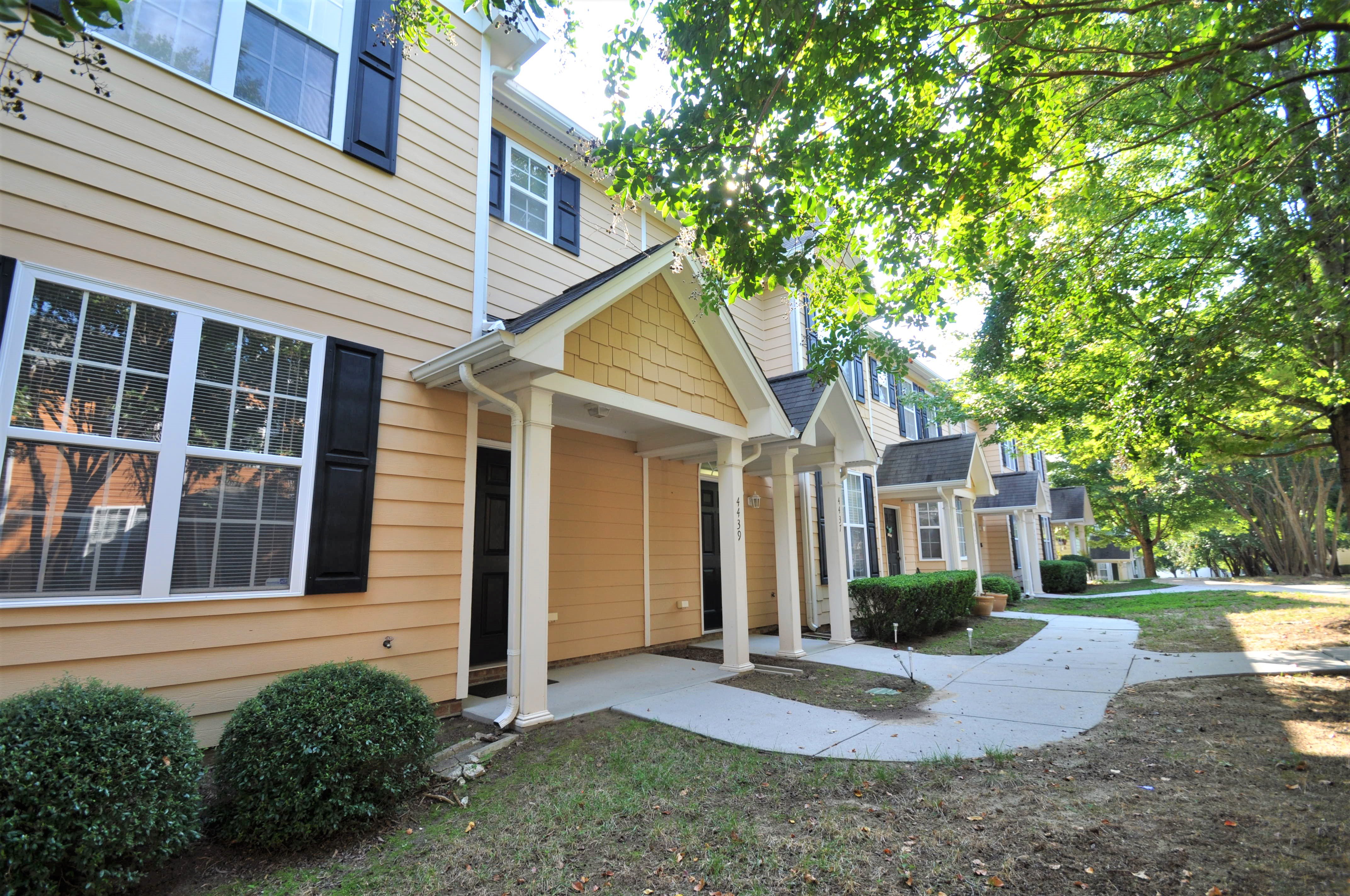This gorgeous North Raleigh townhome lives like a single family home and is sure to please! Its immaculate interior exudes a feeling of spaciousness that must be seen to be believed. A covered front porch welcomes you inside where you'll appreciate the dark laminate floors that stretch throughout the first floor; these are both beautiful as well as low maintenance. The foyer opens on one side to a study/den with an arched entry, double windows and a very neat triple bulb fixture with an adjustable height feature. Head down the hallway where you're greeted by an expansive kitchen, family room, and dining area. The kitchen serves as the center of the living space and it includes custom painted cabinetry, a pantry, sleek stainless appliances (including a gas oven) and a huge island with a breakfast bar, pendant lighting and a double bowl stainless sink. This open concept design works perfectly for both entertaining as well as today's more casual lifestyle. An adjacent dining area seamlessly transitions into the family room and kitchen; it's also perfectly-proportioned. The family room features recessed can lighting, a light/fan combo, a cozy gas log fireplace, double windows and a TV niche. Before heading upstairs be sure to visit the outdoor living space - 4439 Golden Moss Path also offers the very rare luxury of a fenced-in, private backyard area complete with a patio, a shade tree, storage closet and a path that leads to the two reserved parking spaces behind the home. Take a quick trip upstairs and you'll find all three bedrooms as well as a very conveniently-located 2nd floor laundry center; with a washer and dryer included for resident's use! No more lugging laundry up and down the stairs. The primary bedroom is quite spacious and it includes a walk-in closet as well as double windows and a private, luxury bathroom with a garden tub, an elevated vanity with dual sinks, and a separate walk-in shower. Bedrooms #2 and #3 both include double wall closets as well as double picture windows with a custom-built sitting bench; offering the perfect place to catch up on homework or read a book!