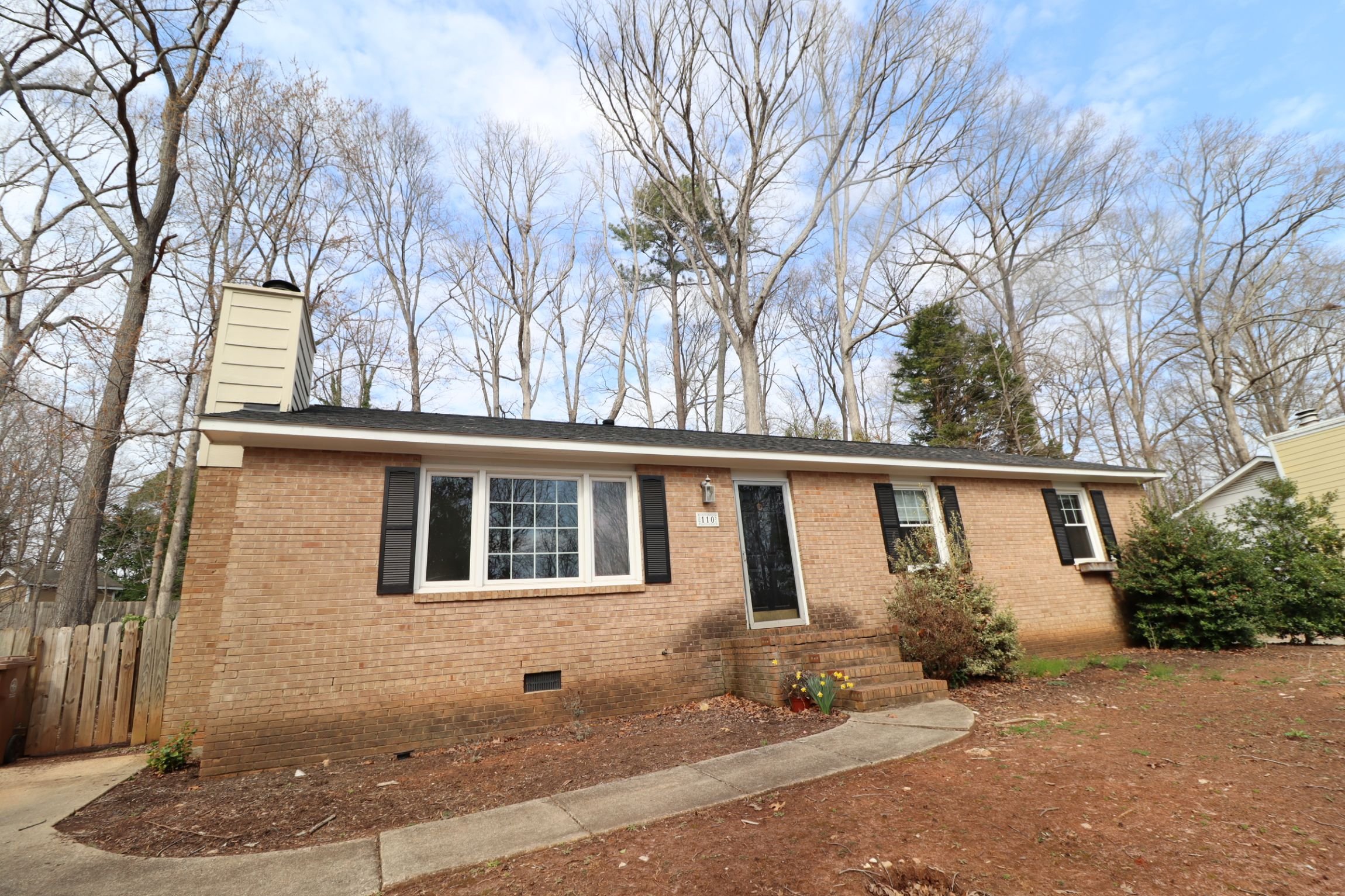 This charming and affordable ranch-style home is tucked away in an established Cary neighborhood and ready for immediate occupancy. Come visit today and you'll surely fall in love! Upon entering, you'll immediately appreciate the luxury plank floors that grace this home from one end to the other - no carpet here! This flooring is as durable as it is attractive and is sure to please. The 14x14 family room lives large and includes a masonry fireplace and natural light that floods in through a massive picture window. An adjacent dining room is perfectly proportioned and offers a pleasant view of the private, wooded backyard. Next, you'll enter an updated kitchen that includes a laundry closet as well as a breakfast area with double picture windows. The kitchen has just been treated to a suite of sleek, stainless-steel appliances, freshly-painted cabinetry and updated counters. You won't want for cabinet space either! 110 Coorsdale Drive continues to impress as you visit the bedrooms. The primary bedroom is quite spacious and boasts double closets, a ceiling fan and a renovated bathroom with a furniture piece vanity, picture frame mirror, brushed nickel fixtures and a immaculate tub/shower. Bedrooms #2, #3 are generously proportioned with ample closet space and easy access to a renovated hall bathroom; also boasting a furniture piece vanity, picture frame mirror, brushed nickel fixtures.